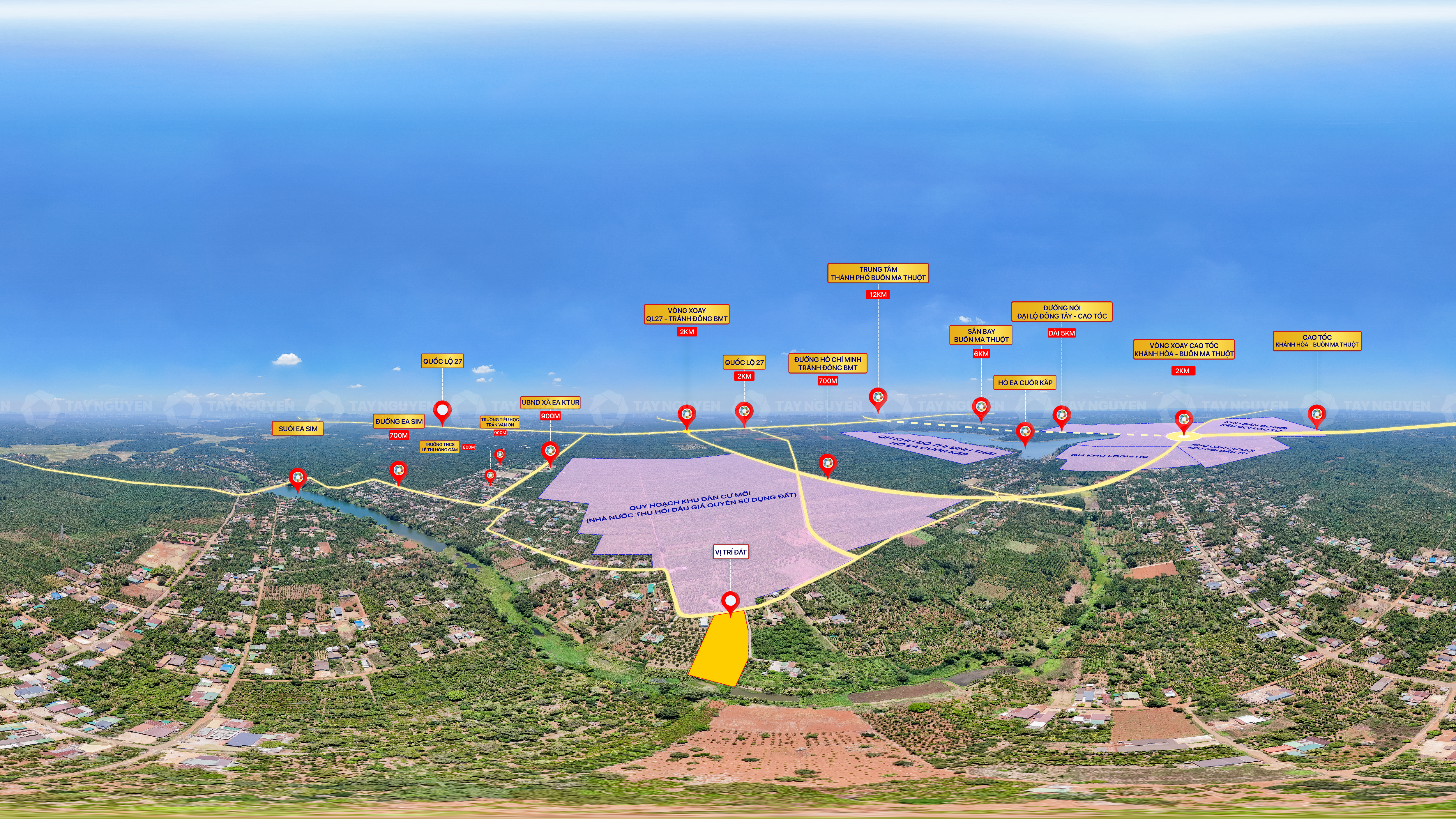 Kết nối nhanh – tiện ích sẵn có: 1,5km đến đường tránh Đông, UBND xã, trường học, sân vận động; 3km đến nút giao cao tốc và hồ sinh thái Ea Cuôr Kắp; 4km đến chợ Trung Hòa; 20 phút đến sân bay Buôn Ma Thuột; 30 phút về trung tâm thành phố